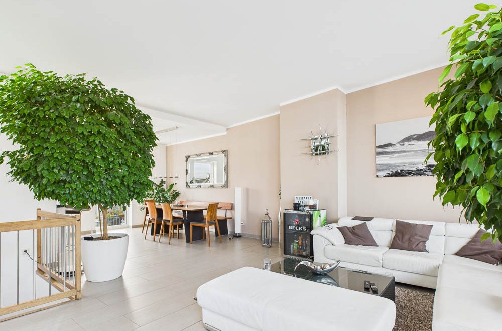 Das Penthouse verfügt über eine eigene Gastherme, wobei jedoch auch ein Fernwärmeanschluss bereits vorhanden ist und künftige Optionen eröffnet. Plissees in allen Räumen bieten Sichtschutz und unterstreichen die gepflegte, hochwertige Gestaltung. Ein Abstellraum auf der 4. Etage bietet zusätzlichen Stauraum, da das Objekt über keinen Keller verfügt. Der Einzug ist flexibel möglich und auf Wunsch kann ein Großteil der hochwertigen Einrichtung in der Wohnung verbleiben.