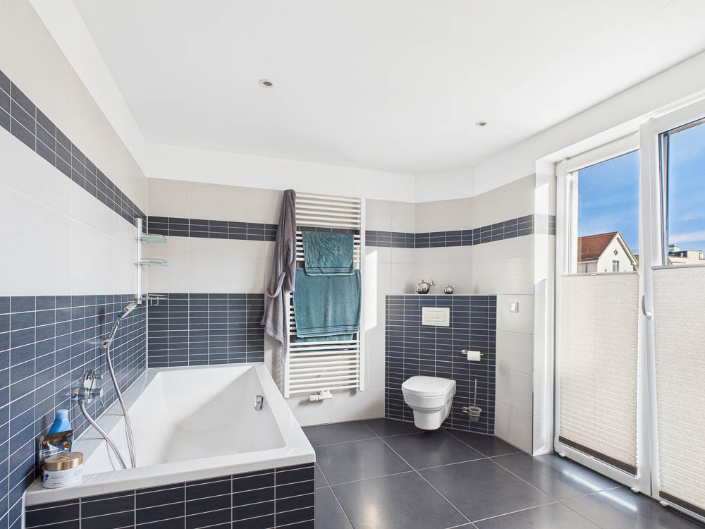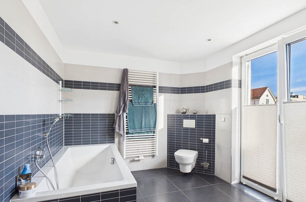 Edles Parkett auf der unteren Ebene und großformatige Steinfliesen im oberen Bereich, schaffen eine harmonische Verbindung aus Wärme und Eleganz. Eine Fußbodenheizung sorgt in allen Räumen für ein angenehmes Raumklima. Die Bäder sind modern gestaltet, teilweise mit integriertem Einbauradio, das für eine dezente Wohlfühlatmosphäre sorgt. Das Saunabad mit Fenster und Blick über Leipzig ist ein echtes Highlight für entspannte Stunden zuhause. Ein Oberlicht sorgt für natürliche Helligkeit und ein Kamineinbau kann nachgerüstet werden, was noch mehr Gemütlichkeit und Wärme ermöglicht.