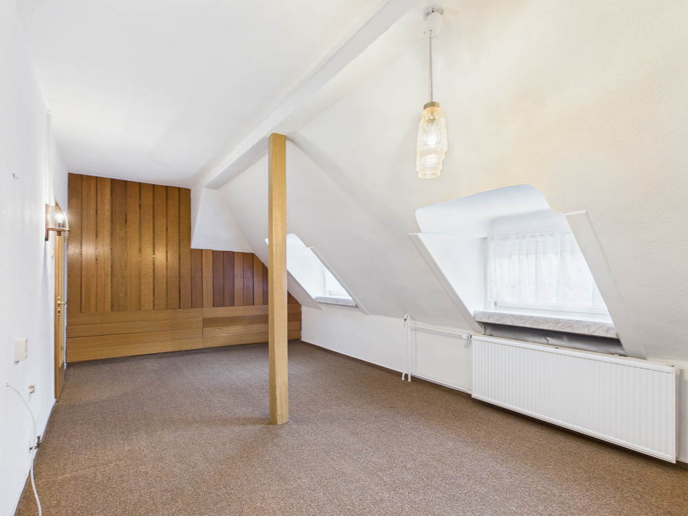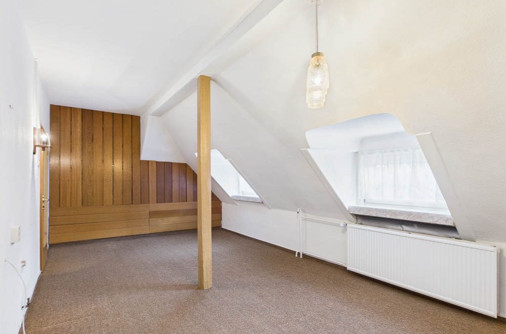 Im Dachgeschoss befindet sich ein weiteres Zimmer sowie Bad und zusätzliche, ausbaufähige Flächen – ideal für individuelle Wohnideen oder weiteren Stauraum.