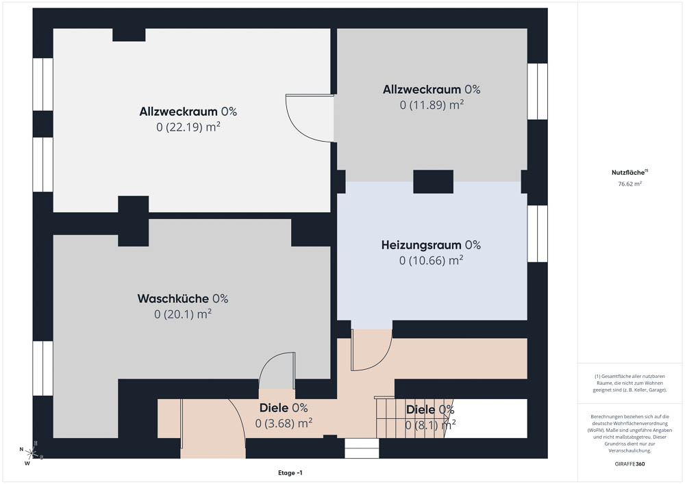 Der Keller überzeugt mit zwei weiteren Räumen, einer Waschküche und dem Heizungsraum. Er schafft reichlich Nutzfläche und bietet perfekte Bedingungen für Hobby, Vorräte oder eine kleine Werkstatt.