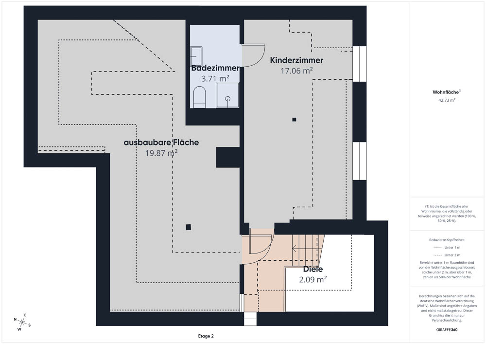 Die erste Etage bietet vier Zimmer, von denen zwei als Durchgangszimmer gestaltet sind, sowie ein Tageslichtbad und einen großzügigen Balkon. Sämtliche Bäder verfügen über Fenster und sorgen so für viel Helligkeit und eine natürliche Belüftung.