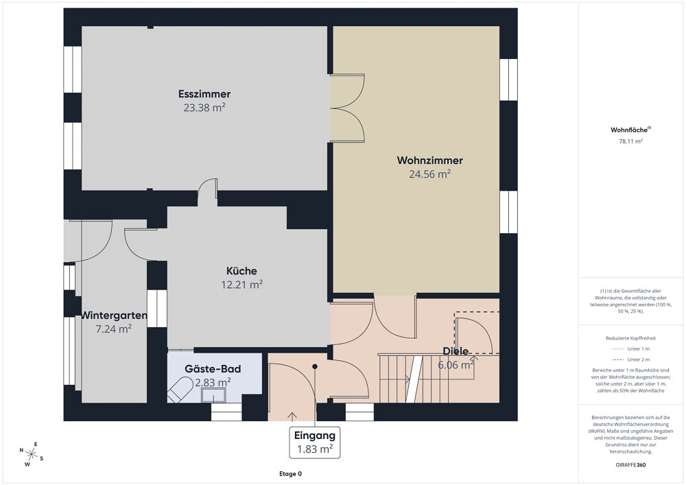 Vom Flur im EG aus betreten Sie das helle Wohnzimmer mit angrenzendem Essbereich und die funktional geschnittene Küche. Von hier aus öffnet sich der Blick in den wunderschönen Wintergarten, der einen herrlichen Ausblick und Zugang in den Garten bietet. Ein Gästebad rundet das Raumangebot auf dieser Ebene ab.