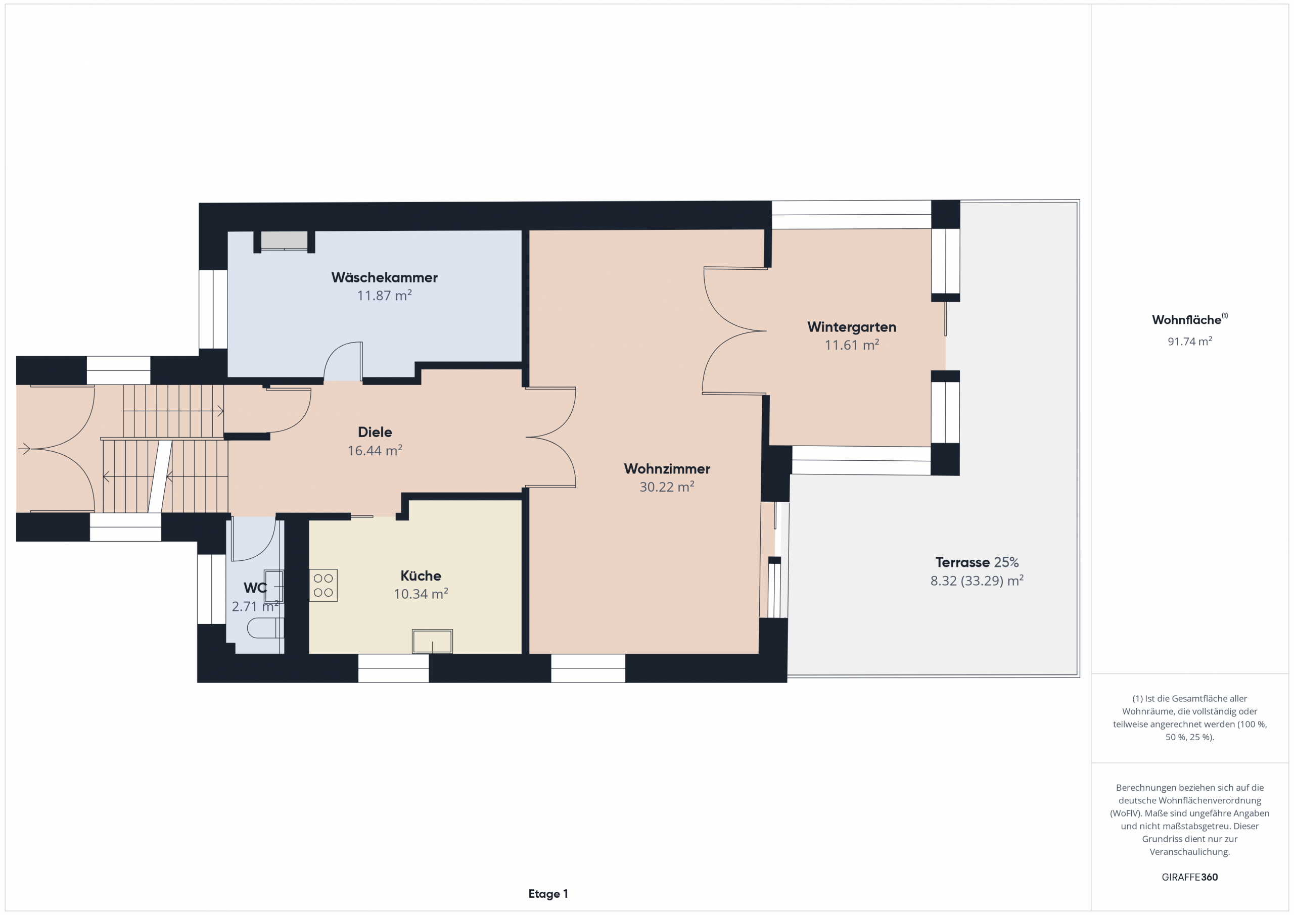 dem Jahr 2016/2017, die im Haus verbleibt. Zusätzlich befinden sich hier ein Gäste-WC, eine Waschküche sowie der großzügige Wohnbereich mit Zugang zu Wintergarten, Terrasse und Garten.