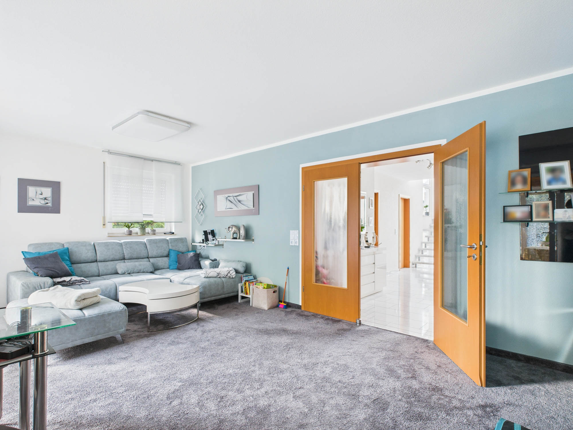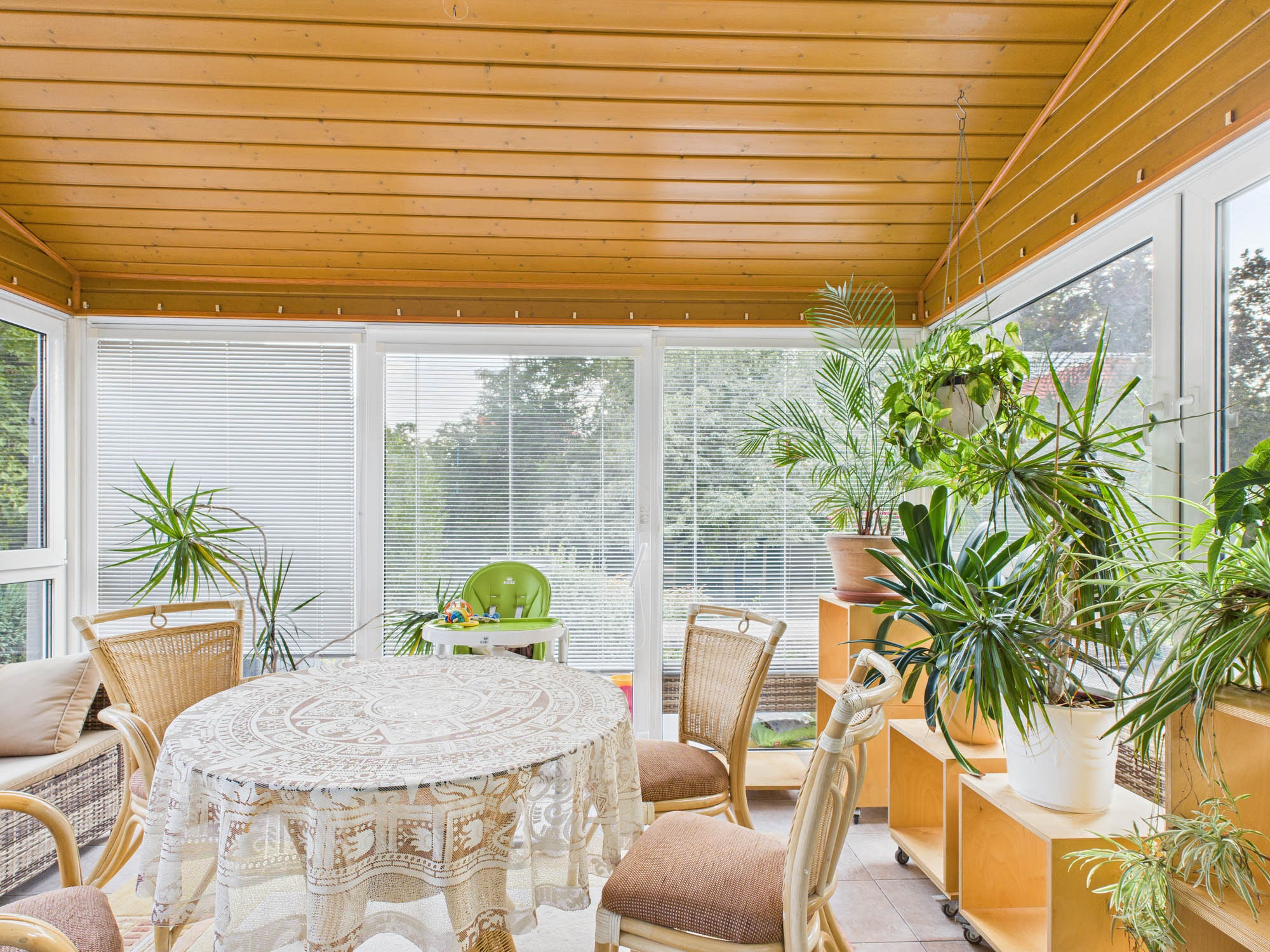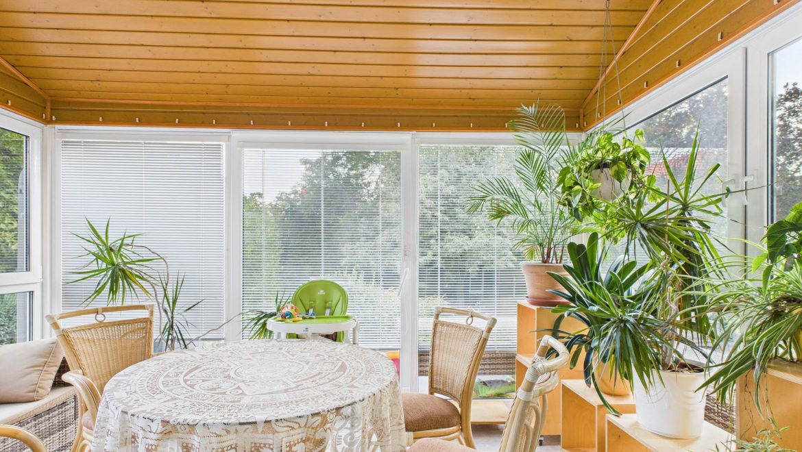 Vom lichtdurchfluteten Wohnzimmer aus gelangen Sie direkt in den angrenzenden Wintergarten, der