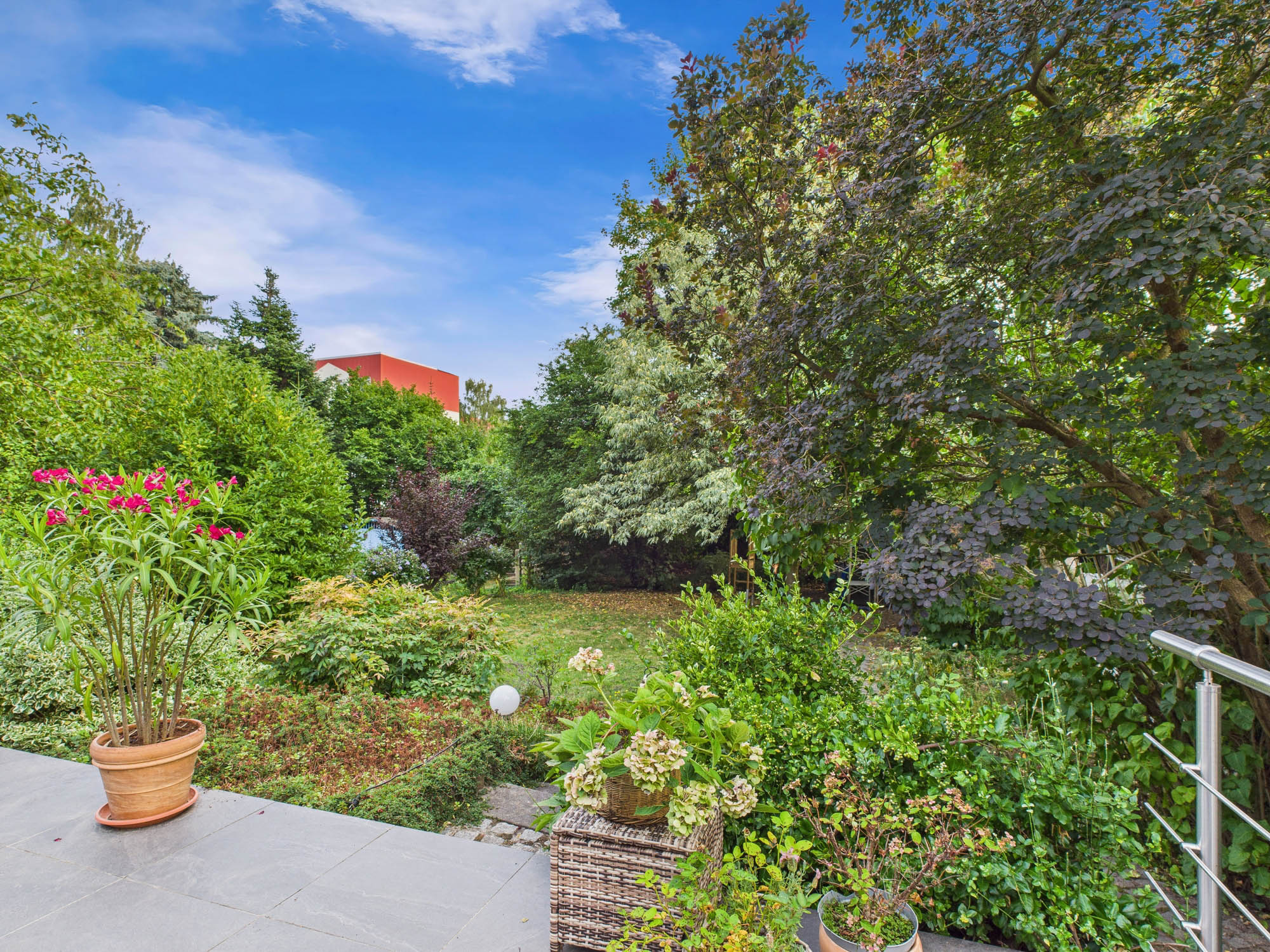 Grundstück mit ca. 693 m² Fläche. Der große, sonnige Garten auf der Südseite sowie die angrenzende