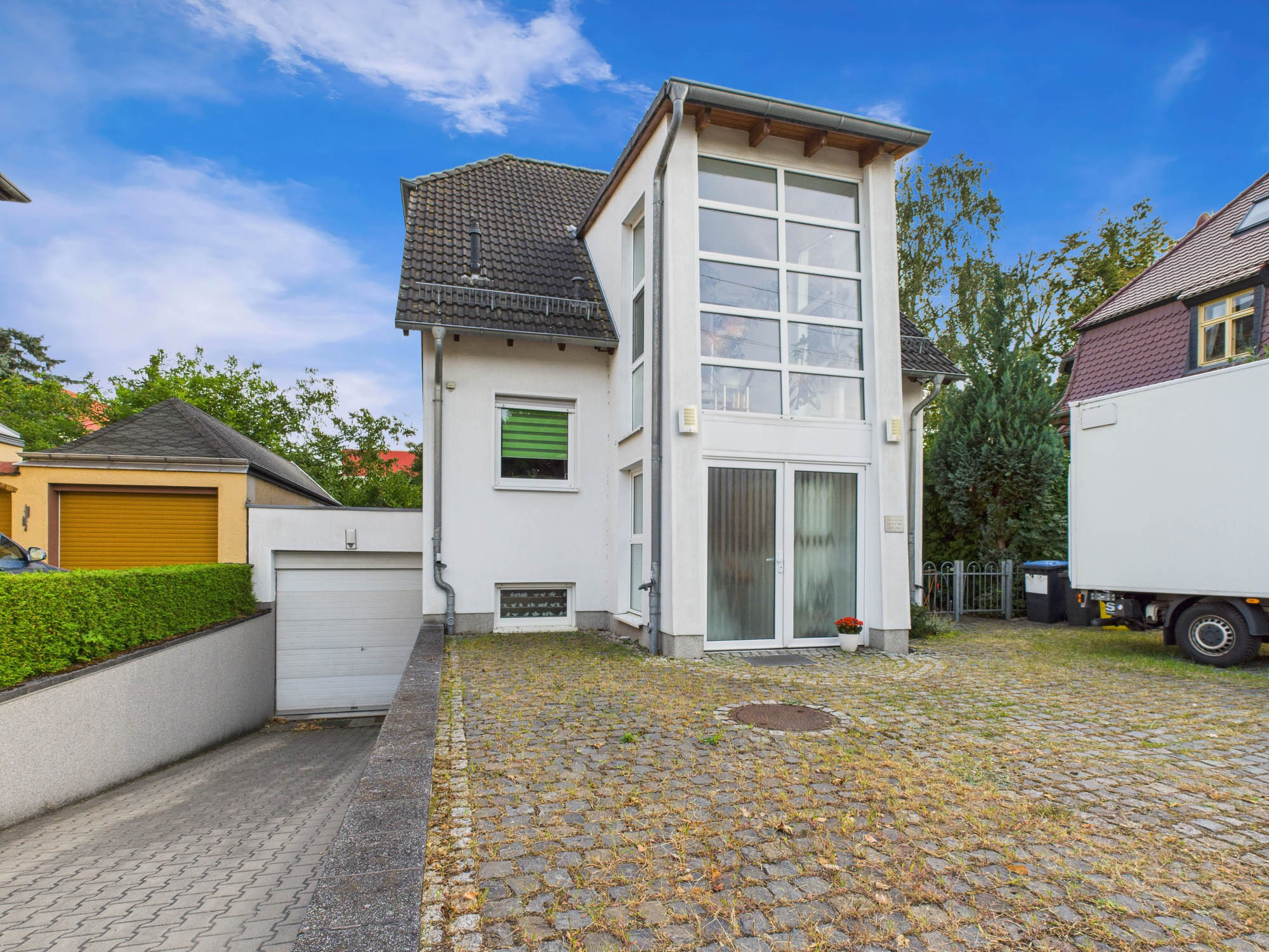 Für Ihre Fahrzeuge stehen neben der Garage mit direktem Zugang zum Haus ebenfalls zwei Außenstellplätze zur Verfügung.