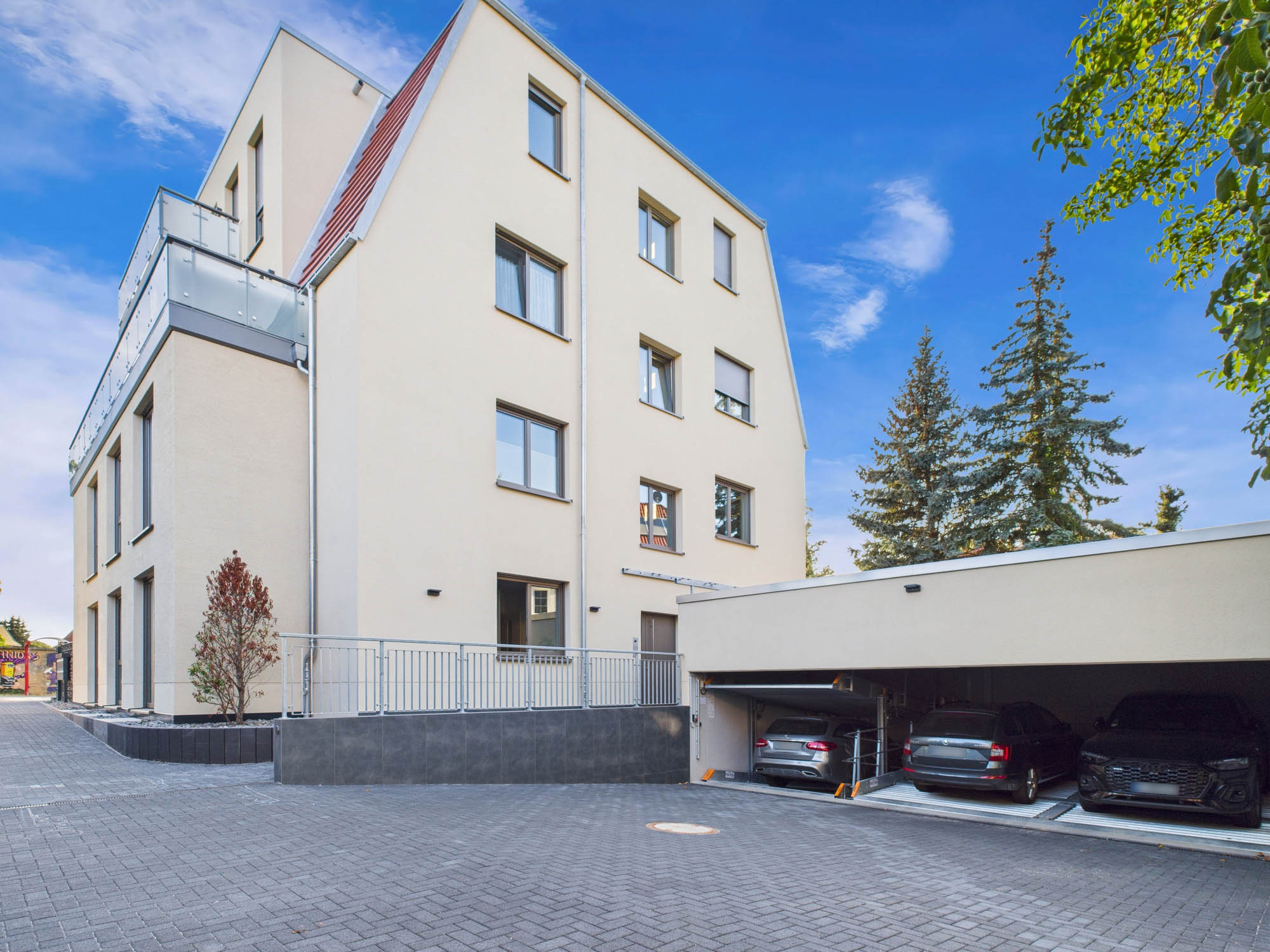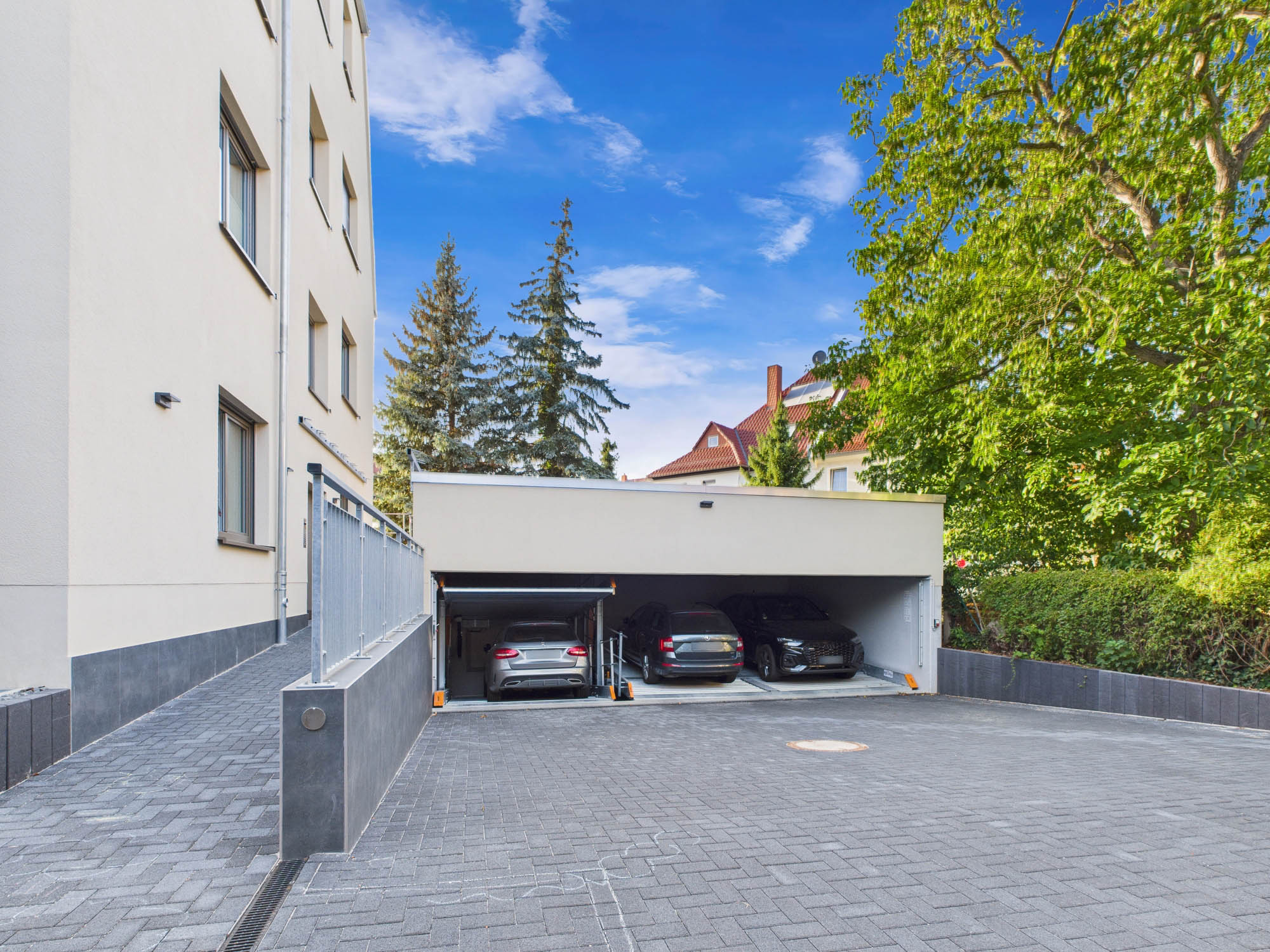Ein eigener Stellplatz sorgt für bequeme Parkmöglichkeiten.und Rückzug.